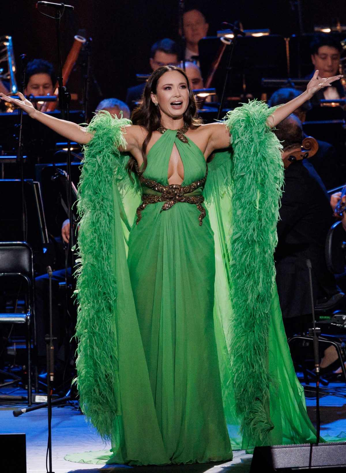 Для концерта в Большом театре Аида Гарифуллина подготовила четыре необыкновенных платья с феноменальными декольте и титаническую программу с невероятной амплитудой вокальных амплуа и характеров. Такую коллекцию абсолютно разных образов могла позволить себе разве что лишь Мария Каллас, но не в одном вечере, а на протяжении всей карьеры.